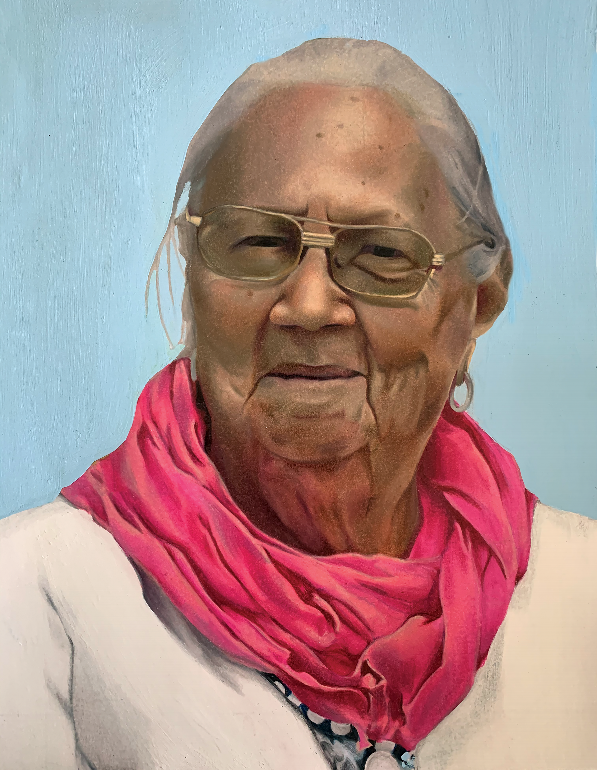 Portrait illustration of a woman on her way to the store, capturing a simple everyday moment with artistic detail.