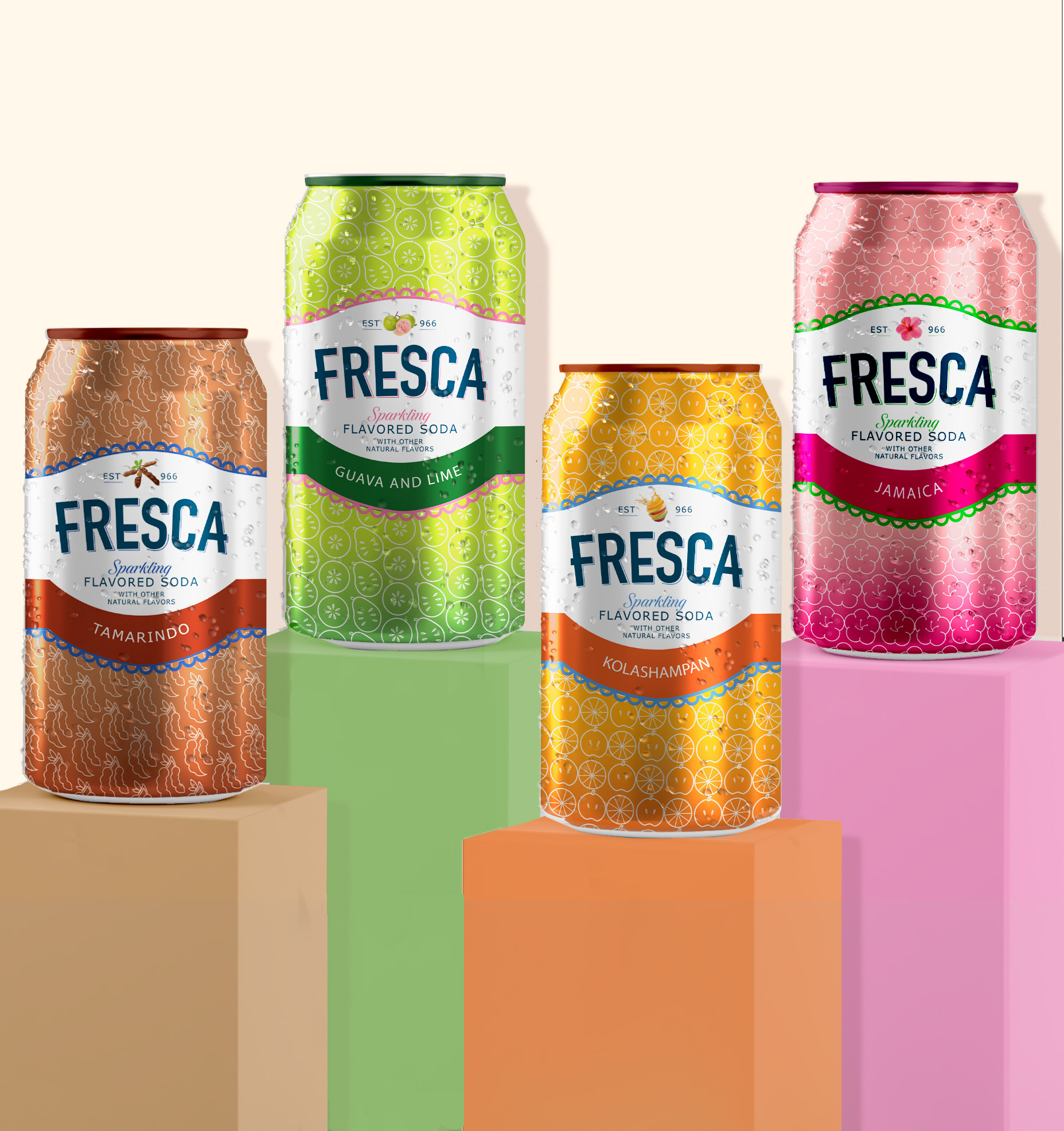 Series of beverage can designs created for Fresca, reimagining the brand with Hispanic-inspired sparkling water flavors. Each design uses bold, vibrant colors and lively patterns to reflect the energy and cultural roots of the flavors while maintaining a cohesive brand identity.
