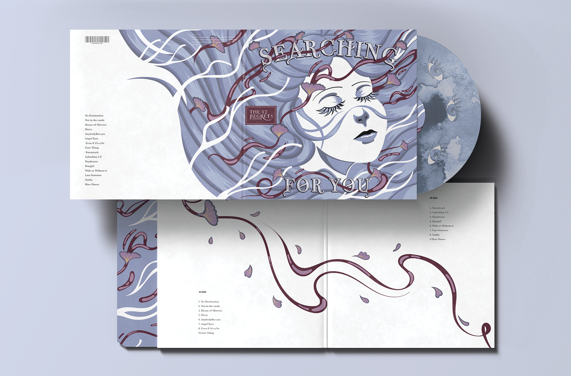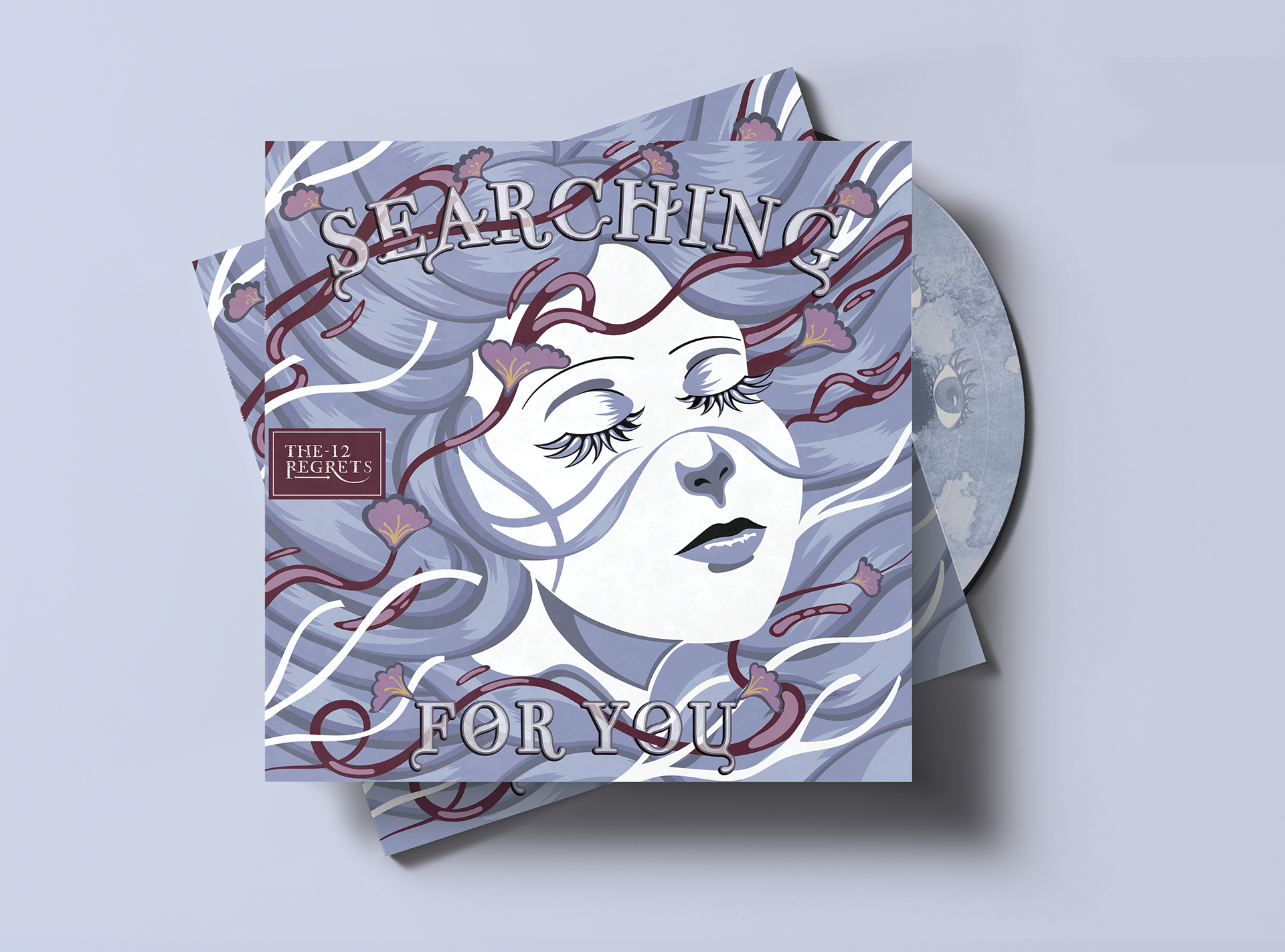 The 12 Regrets is and indie rock band with a new album called Searching for You. For this project I wanted to capture the feeling you get when you listen to the bands music. The color palette was made to be more cool toned to match the aesthetic of the brand and the illustration was made to showcase a lot of movement to go along with the music.