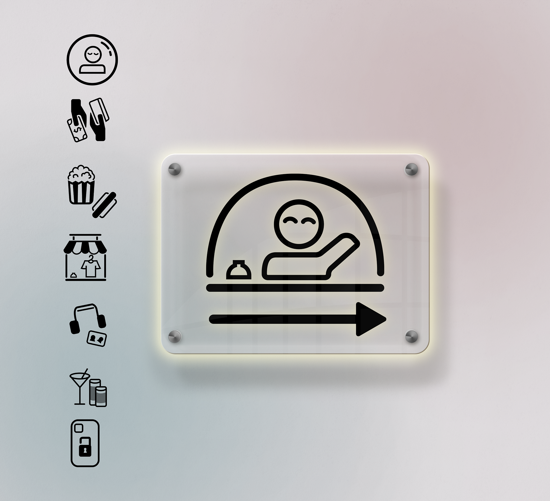 Iconography project designing way-finding signs for a stadium, guiding guests to services, food, drinks, and other key areas